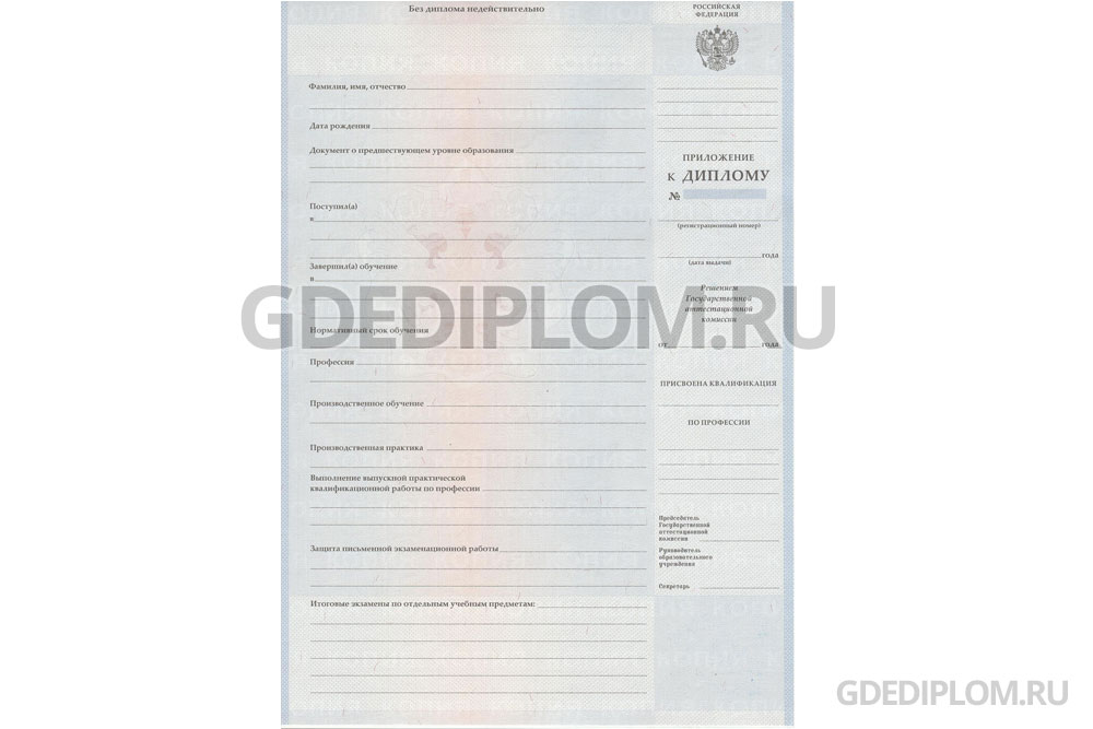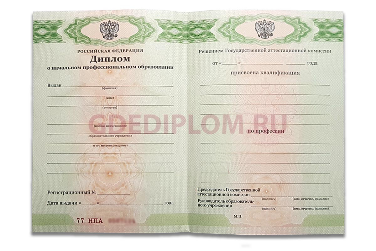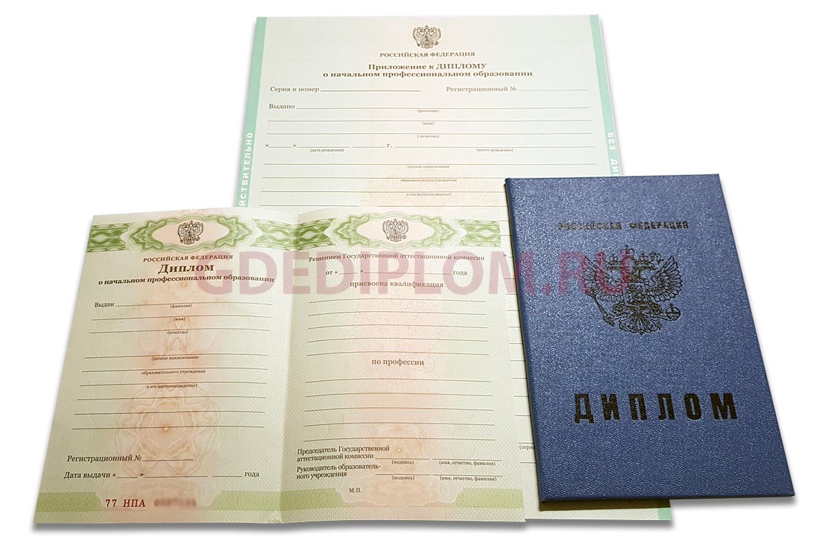 Диплом о начальном профессиональном образовании, который выдавался в училищах и лицеях страны в 2011, 2012, 2013 годах в училищах и лицеях страны. Заполняется по стандартам, имеет все печати и подписи. Выбрать можно любую профессию. Доставка за 1 день без предоплаты.